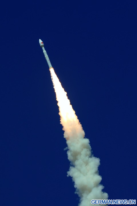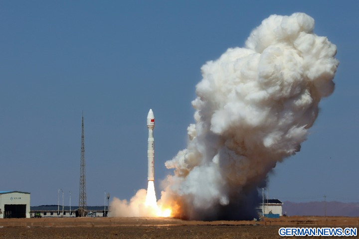 JIUQUAN, 14. April 2026 (Xinhua) -- Eine Trägerrakete vom Typ „Lijian-1 Y12“ startet mit acht Satelliten von der Dongfeng-Pilotzone für kommerzielle Weltrauminnovation im Nordwesten Chinas, 14. April 2026. Die Rakete startete um 12:03 Uhr (Ortszeit Beijing) und brachte die Satelliten erfolgreich in ihre geplanten Umlaufbahnen. (Foto von Wang Haixia/Xinhua)