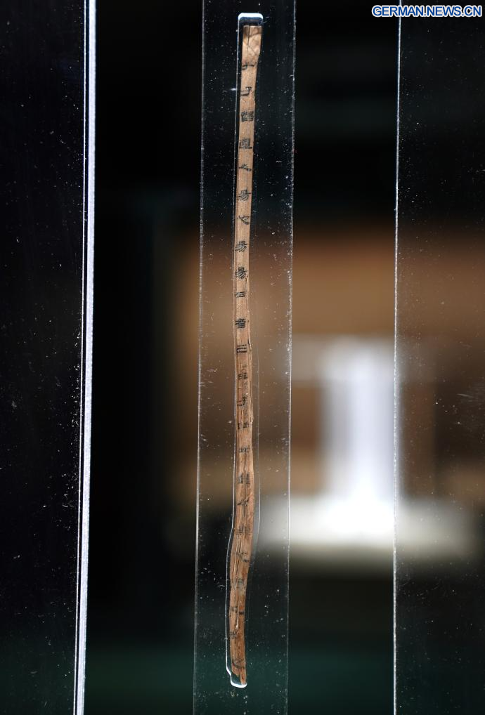 NANCHANG, 14. April 2026 (Xinhuanet) -- Dieses am 13. April 2026 aufgenommene Foto zeigt eine Szene innerhalb des Austragungsortes von „Einer Ausstellung über Kultur der Bambusstreifen der Han-Dynastie aus dem Marquisat Haihun“ im Nanchang-Museum für Relikte des Marquisats Haihun der Han-Dynastie in Nanchang in der ostchinesischen Provinz Jiangxi. Die Ausstellung wurde hier früher in dieser Woche eröffnet, wobei über 100 neu restaurierte Bambusstreifen zum ersten Mal seit ihrer Ausgrabung öffentlich ausgestellt werden.