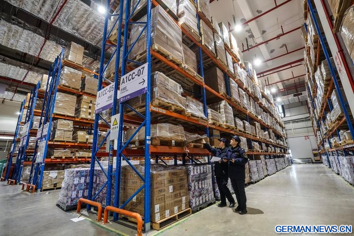 Zollbeamte führen Kontrollen im Lager eines grenzüberschreitenden E-Commerce-Unternehmens in der umfassenden Zollfreizone von Yiwu in der Provinz Zhejiang in Ostchina durch, 30. Januar 2026. (Xinhua/Xu Yu)