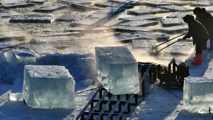 Fotoreportage: Eissammlung am Songhua-Fluss für nächste Saison der Harbin Ice-Snow World
