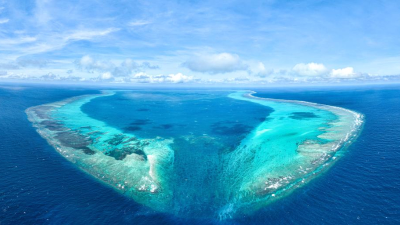 Luftaufnahme von Chinas Huangyan Dao im Südchinesischen Meer