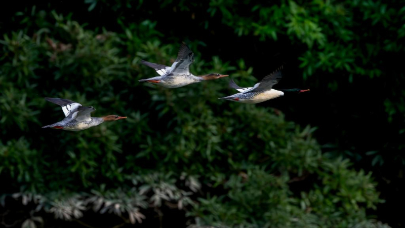 Chinesische Gänsesäger beim Überwintern am Dazhang-Fluss in Südostchina gesichtet