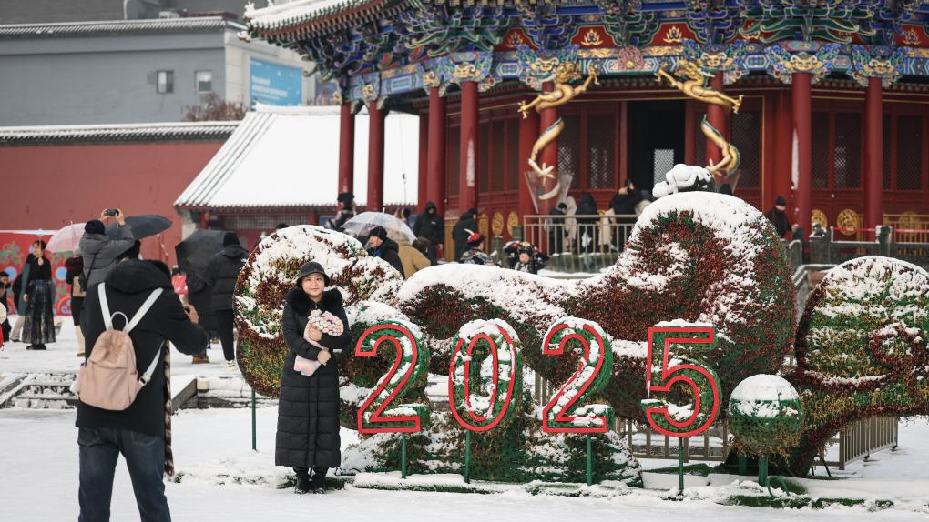 Ein Blick auf das schneebedeckte Palastmuseum in Beijing