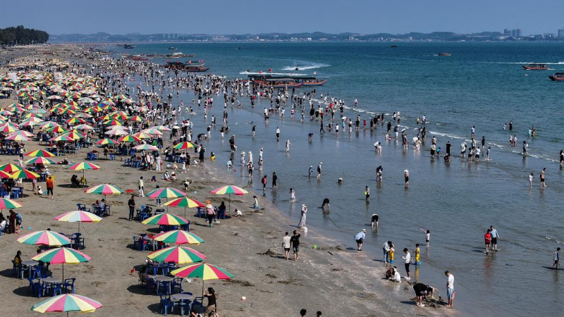 Touristen strömen während des chinesischen Neujahrsfests an Strand in Guangxi
