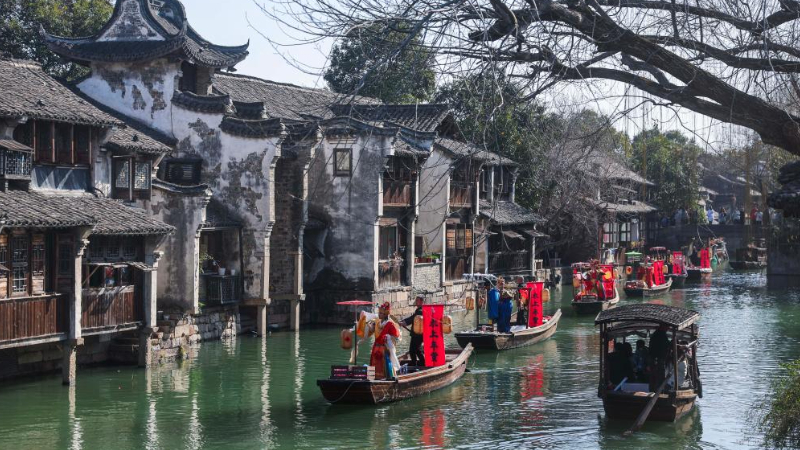 Antike Wassergemeinde Wuzhen veranstaltet Aktivitäten während des Frühlingsfestes