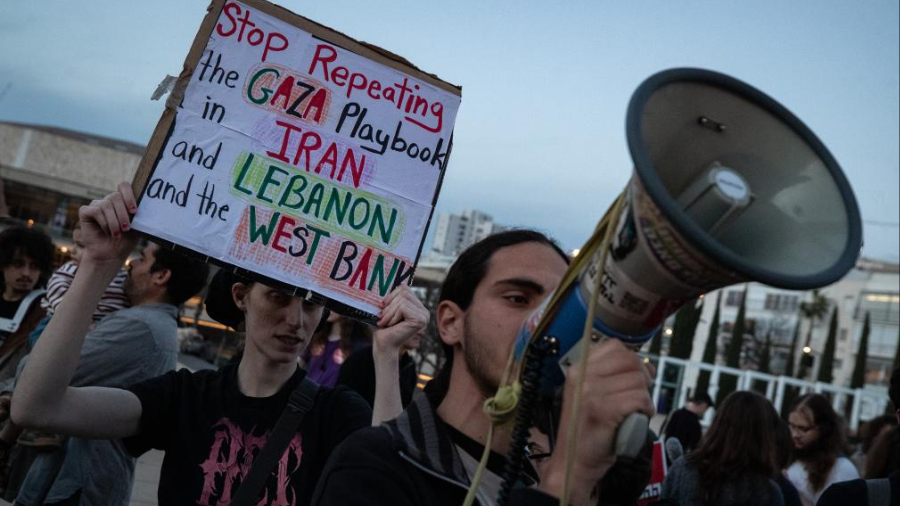 Menschen protestieren in Tel Aviv gegen militärische Operationen der USA und Israels
