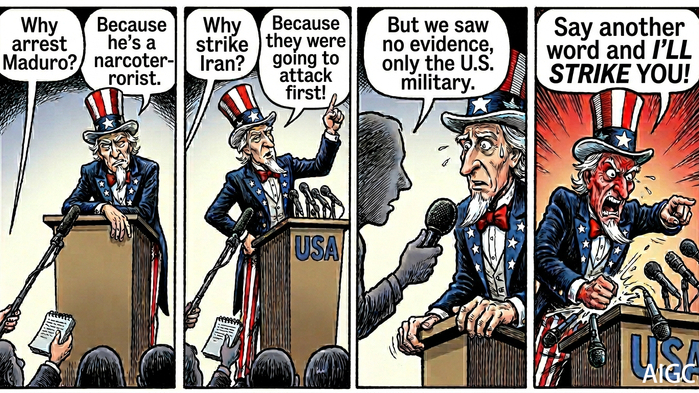 KI-Cartoon | Von Lateinamerika bis zum Nahen Osten: Uncle Sams unumstößliche Logik