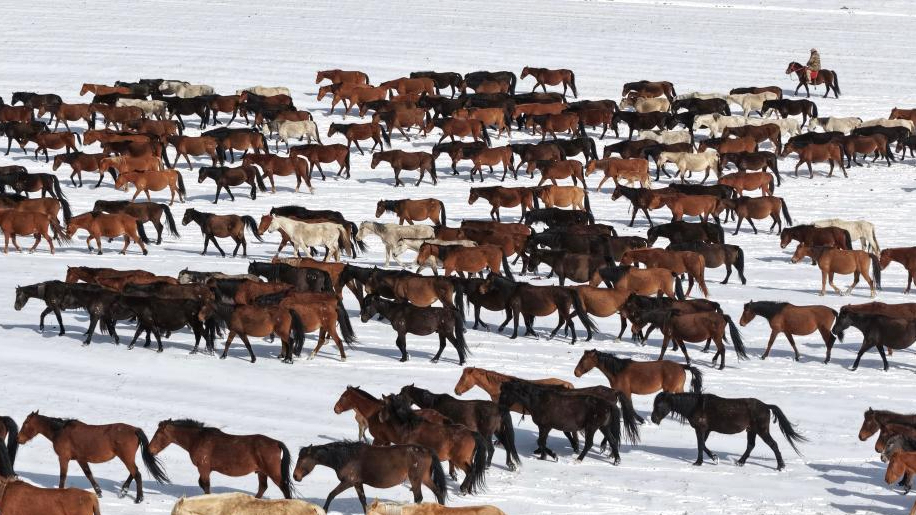 In Bildern: Pferdeherden in Chinas Gansu ziehen während Saatzeit von Ackerflächen auf natürliche Weideflächen