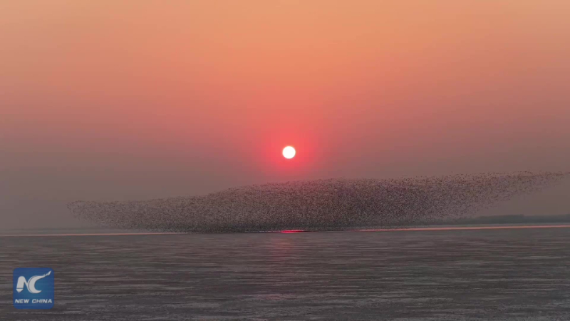 Das Spektakel „Vogelwelle“ entfaltet sich am Wolong-See, wenn die Zugvogelsaison ihren Höhepunkt erreicht