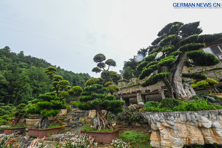 JINHUA, 20. Juni 2023 (Xinhua) -- Das Foto zeigt in Töpfen gewachsene Pflanzen im Dorf Dayuan in der Gemeinde Chisong im Bezirk Jindong der Stadt Jinhua in der Provinz Zhejiang in Ostchina, 20. Juni 2023. Basierend auf der Verflechtung von Tourismus und Landwirtschaft hat der Bezirk Jindong in seinen Verwaltungsdörfern einen Entwicklungsgürtel für die Wirtschaft in ländlichen Gebieten gefördert, der sich durch charakteristische Gewerbe auszeichnet. (Xinhua/Xu Yu)