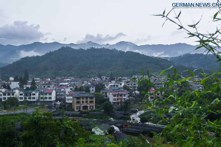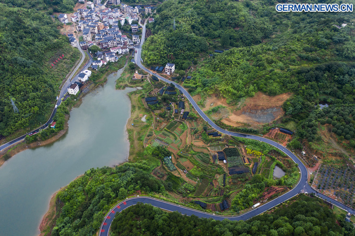 JINHUA, 20. Juni 2023 (Xinhua) -- Das Foto zeigt das Dorf Beishankou in der Gemeinde Chisong im Bezirk Jindong der Stadt Jinhua in der Provinz Zhejiang in Ostchina, 20. Juni 2023. Basierend auf der Verflechtung von Tourismus und Landwirtschaft hat der Bezirk Jindong in seinen Verwaltungsdörfern einen Entwicklungsgürtel für die Wirtschaft in ländlichen Gebieten gefördert, der sich durch charakteristische Gewerbe auszeichnet. (Xinhua/Xu Yu)