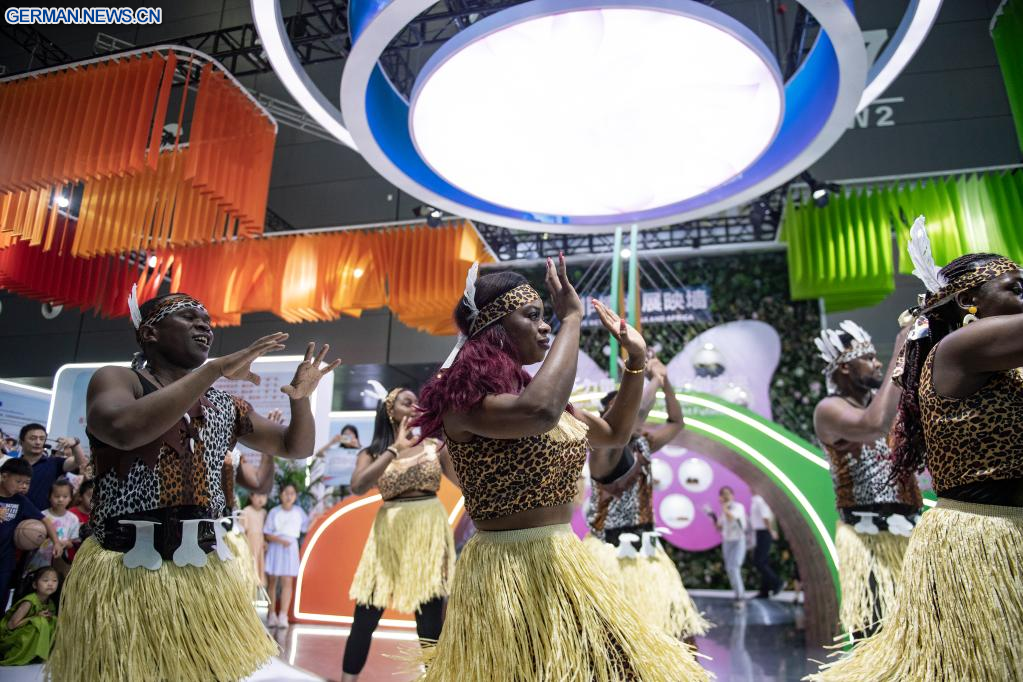 CHANGSHA, 1. Juli 2023 (Xinhuanet) -- Schauspieler führen afrikanischen Tanz während der dritten chinesisch-afrikanischen Wirtschafts- und Handelsmesse in Changsha in der zentralchinesischen Provinz Hunan auf, 1. Juli 2023. Die dritte chinesisch-afrikanische Wirtschafts- und Handelsmesse findet vom 29. Juni bis 2. Juli in Changsha statt. (Quelle: Xinhua/Sun Ruibo)