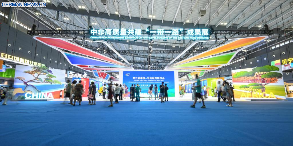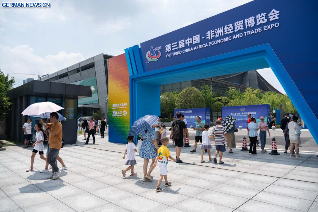 CHANGSHA, 1. Juli 2023 (Xinhuanet) -- Menschen besuchen das Internationale Kongress- und Ausstellungszentrum Changsha während der dritten chinesisch-afrikanischen Wirtschafts- und Handelsmesse in Changsha in der zentralchinesischen Provinz Hunan, 1. Juli 2023. Die dritte chinesisch-afrikanische Wirtschafts- und Handelsmesse findet vom 29. Juni bis 2. Juli in Changsha statt. (Quelle: Xinhua/Chen Yehua)