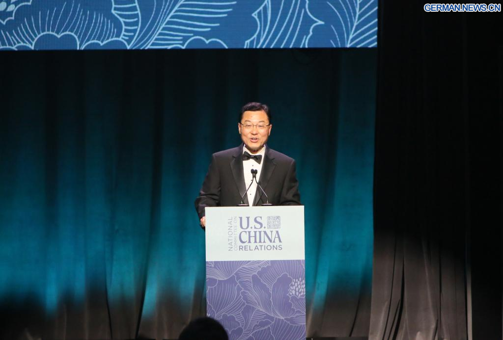 In seiner Rede beim jährlichen Galadinner des Nationalkomitees für die Beziehungen zwischen den USA und China erklärte Xie, dass „ein Zoll- oder Handelskrieg letztendlich niemandem nützen wird“. (Quelle: Xinhua/Zhang Fengguo)