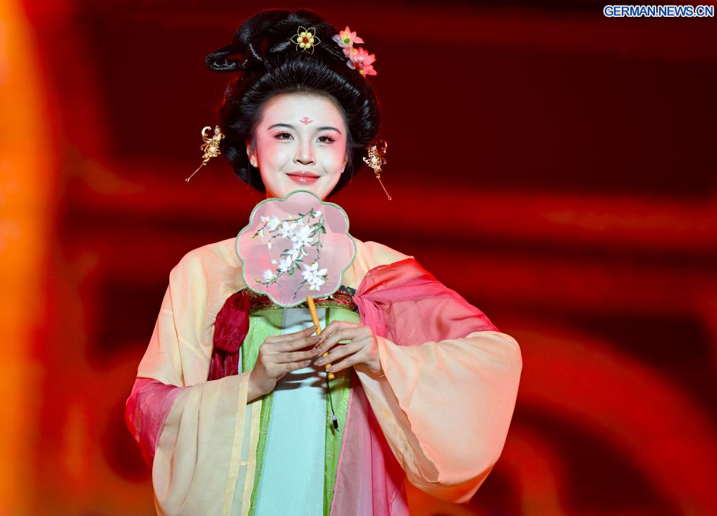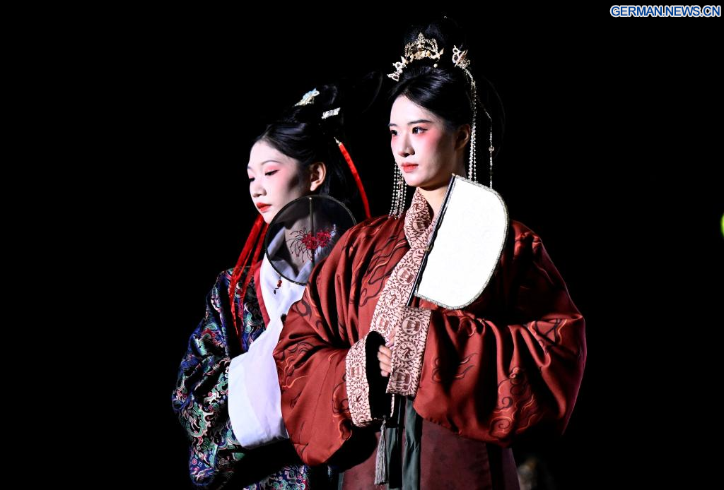 ZHENGZHOU, Südkorea, 30. Oktober (Xinhua) -- Models präsentieren Kreationen bei einer Modenschau in der antiken Stadt Luoyi in Luoyang in der zentralchinesischen Provinz Henan, 29. Oktober 2025. (Quelle: Xinhua/Hao Yuan)