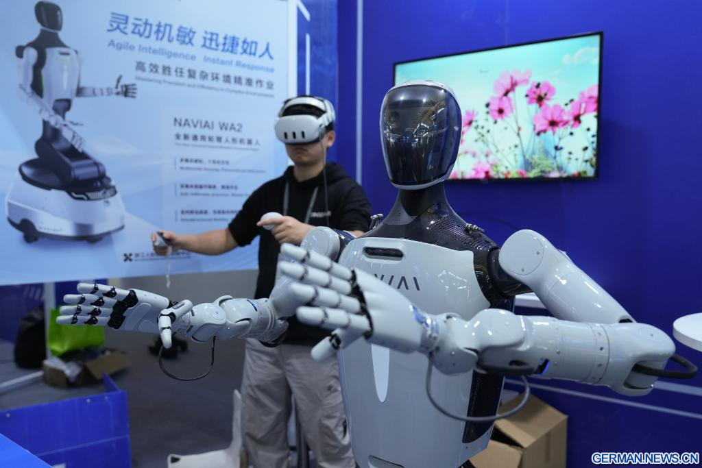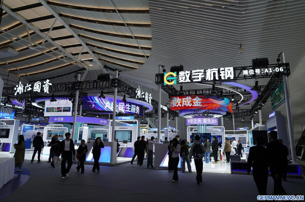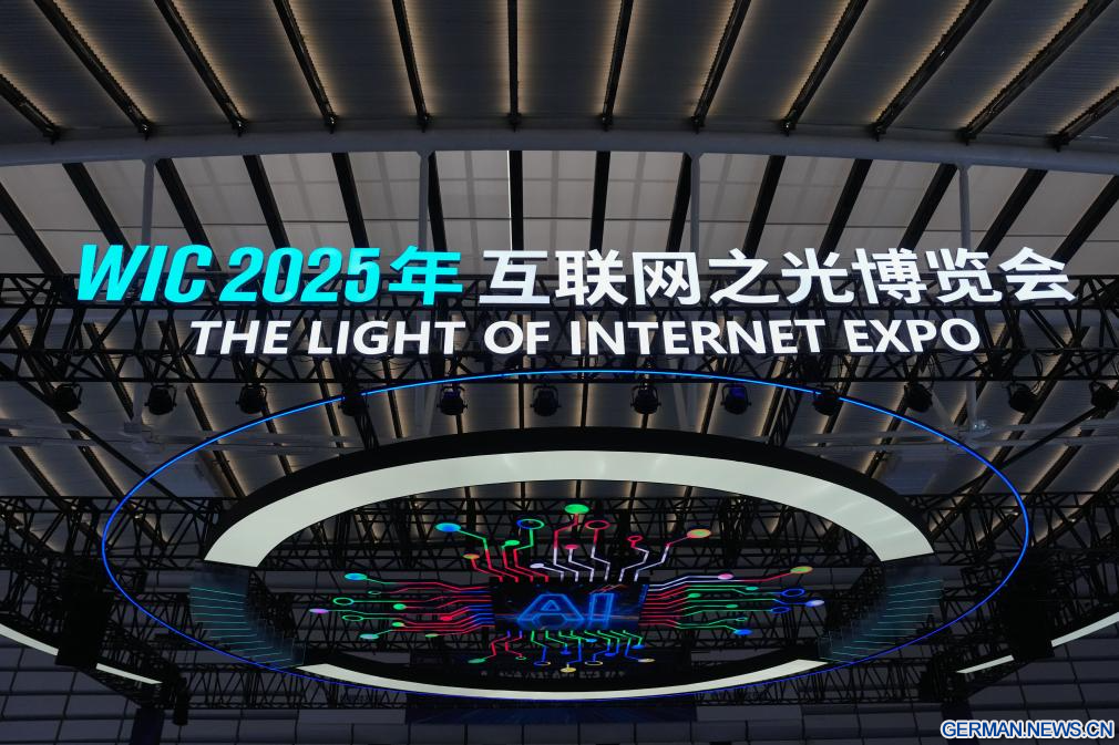 TONGXIANG, 6. November 2025 (Xinhuanet) -- Das Foto vom 6. November 2025 zeigt eine Szene auf der Light of Internet Expo der Welt-Internet-Konferenz (WIC) 2025 in Wuzhen in der ostchinesischen Provinz Zhejiang. Die Messe wurde am Donnerstag eröffnet und präsentiert mehr als 1.000 hochmoderne KI-Technologieprodukte von über 600 Unternehmen aus dem In- und Ausland. (Quelle: Xinhua/Huang Zongzhi)
