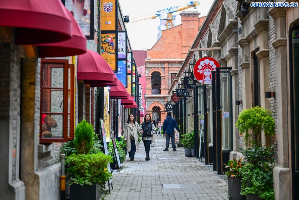 SHANGHAI, 9. November 2025 (Xinhuanet) -- Menschen besuchen ein berühmtes Modeviertel im ostchinesischen Shanghai, 9. November 2025. In den letzten Jahren hat sich Shanghai darauf konzentriert, historische und kulturelle Viertel zu optimieren, städtische Kultur- und Lifestyle-Bereiche zu entwickeln, das kulturelle Leben der Bürger zu bereichern und die tiefe Integration von Kultur und Tourismus zu fördern. (Quelle: Xinhua/Cai Xiangxin)