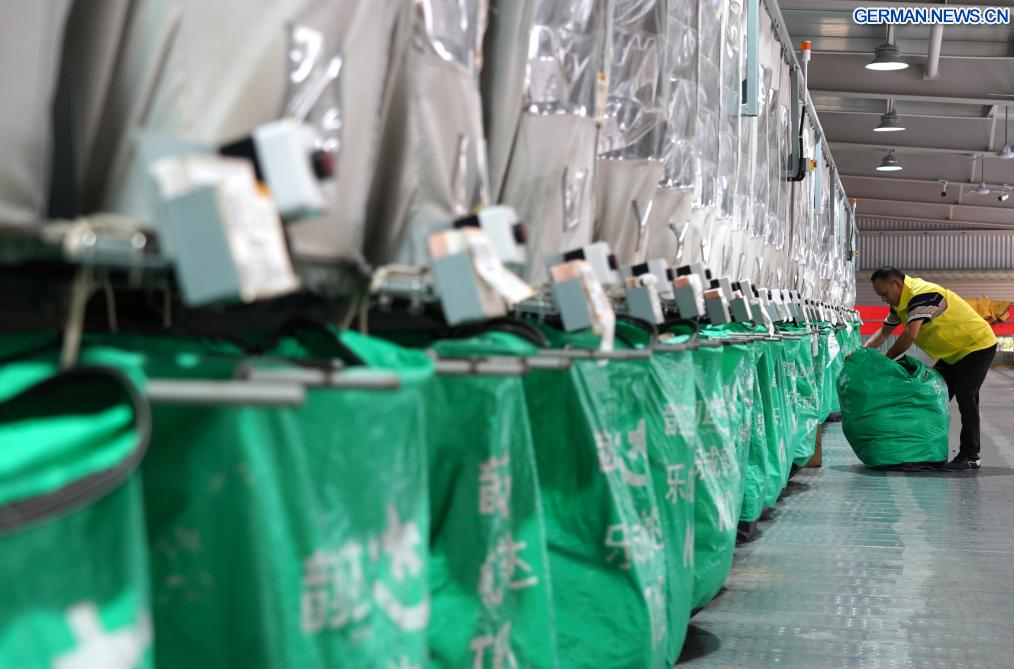 BEIJING, 10. November 2025 (Xinhuanet) -- Ein Mitarbeiter arbeitet an einer automatisierten Paketsortierlinie eines Expressunternehmens in der Gemeinde Liushi der Stadt Yueqing in der ostchinesischen Provinz Zhejiang, 10. November 2025. (Foto von Cai Kuanyuan/Xinhua)