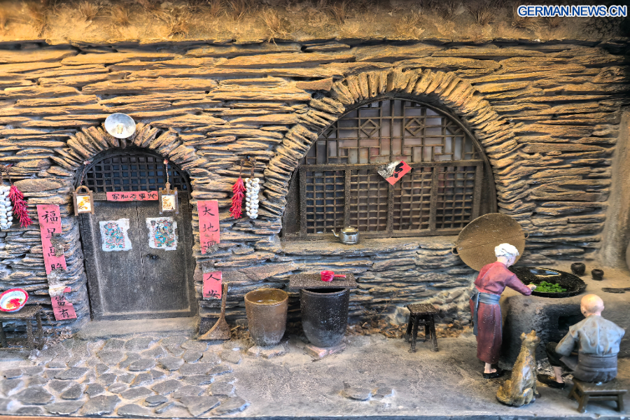 JINAN, 12. November (Xinhua) -- Wenn man Lu Qinghuans Atelier betritt, fühlt man sich wie in einem Museum für chinesische Wohnarchitektur, von den Höhlenwohnungen im Nordwesten und den weiß getünchten Häusern an Bächen und Brücken im Osten bis hin zu den röhrenförmigen Wohnhäusern der Städte im Norden, aus deren Schornsteinen Rauch aufsteigt.
