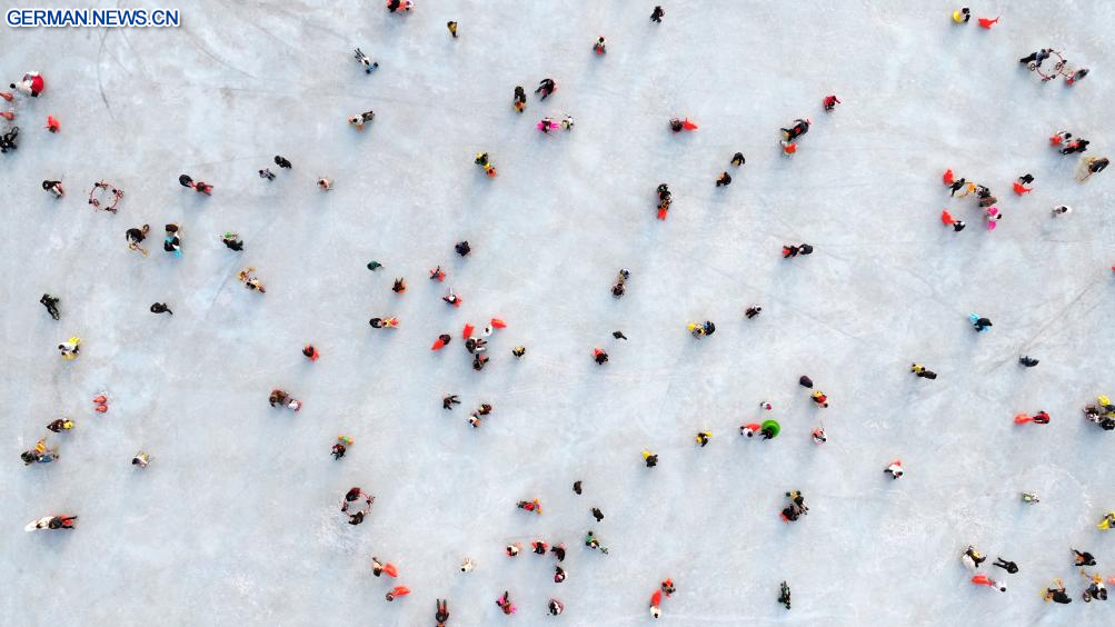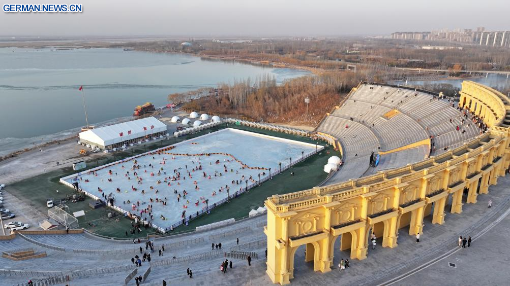 YINCHUAN, 18. Januar 2026 (Xinhuanet) -- Menschen haben Spaß auf einer Eisbahn in einem Park in Yinchuan im nordwestchinesischen Autonomen Gebiet Ningxia der Hui, 17. Januar 2026. (Quelle: Xinhua/Wang Peng)