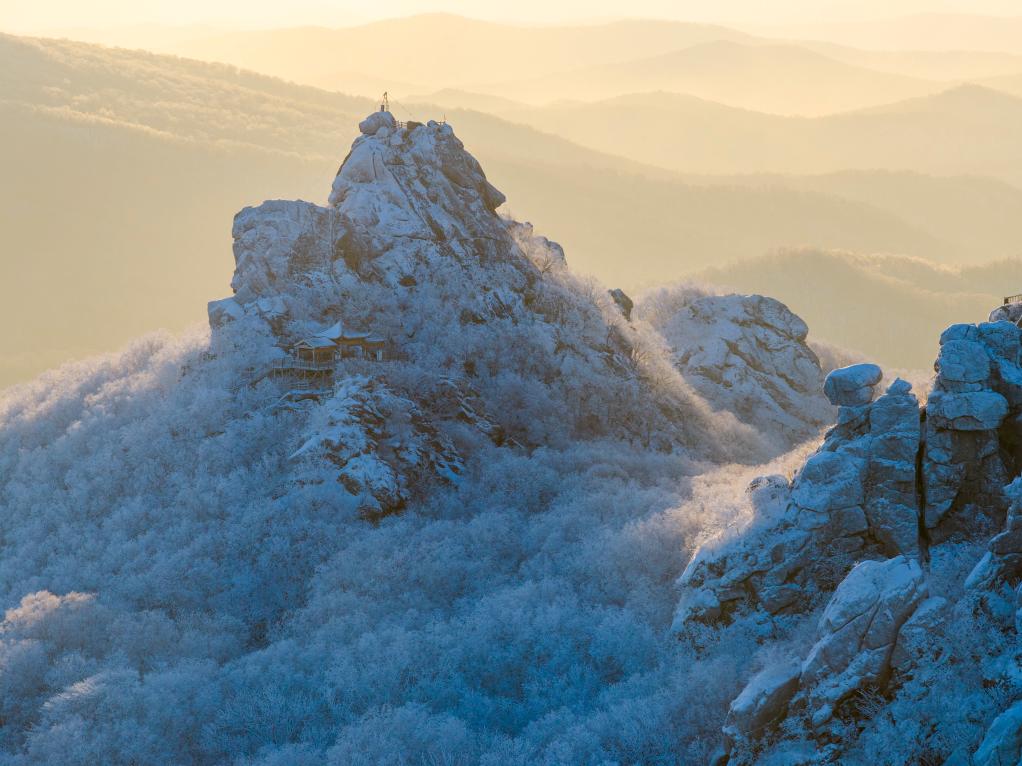 SHUANGYASHAN, 25. Januar 2026 (Xinhuanet) -- Das am 25. Januar 2026 aufgenommene Luftbild einer Drohne zeigt die Raureiflandschaft des Qixingshan-Waldparks in Shuangyashan in der nordostchinesischen Provinz Heilongjiang. (Foto von Han Yang/Xinhua)