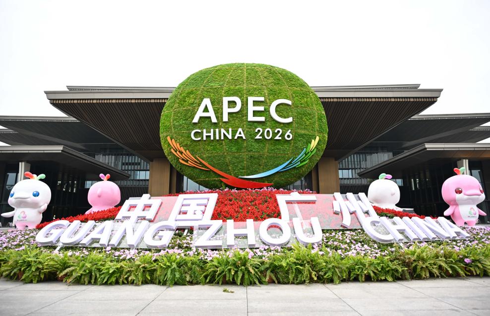 GUANGZHOU, 9. Februar 2026 (Xinhuanet) -- Das am 10. Februar 2026 aufgenommene Foto zeigt die Außenansicht des Veranstaltungsortes des ersten Treffens hochrangiger Beamter von APEC China 2026 in Guangzhou in der südchinesischen Provinz Guangdong. Die Eröffnungstagung des ersten Treffens hochrangiger Beamter von APEC China 2026 fand am Dienstag hier statt. (Quelle: Xinhua/Deng Hua)