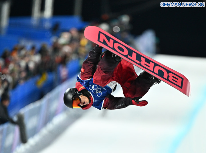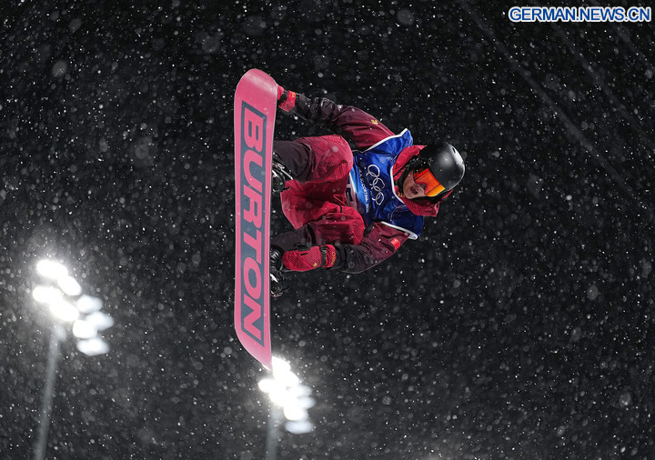Der chinesische Snowboarder Wang Ziyang belegte am Mittwoch bei den Olympischen Winterspielen in Mailand-Cortina mit einer Punktzahl von 80,50 im zweiten Durchgang den 10. Platz in der Qualifikation der Männer in der Halfpipe und sicherte sich damit einen Platz im Finale. (Xinhua/Zhang Hongxiang)