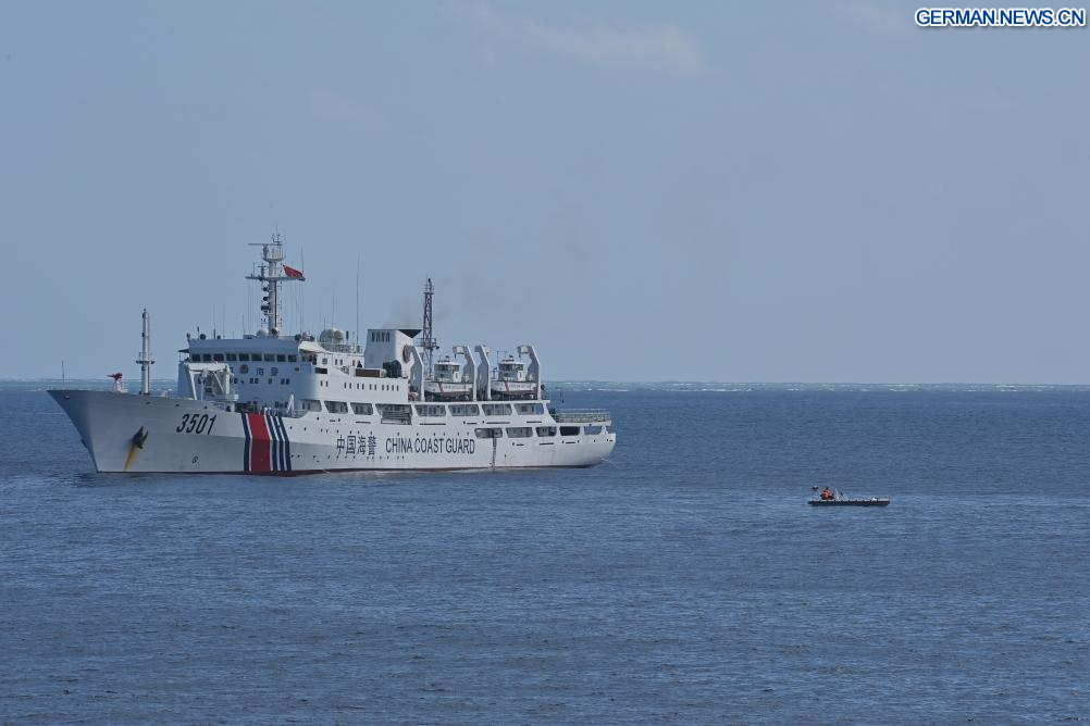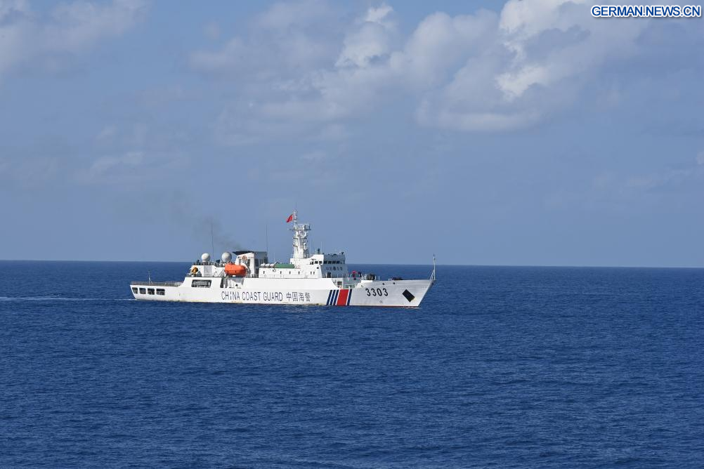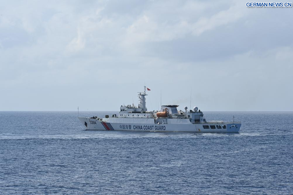 SÜDCHINESISCHES MEER, 12. Februar 2026 (Xinhuanet) -- Das Schiff „Hailing” der chinesischen Küstenwache (CCG) führt eine Strafverfolgungsübung in den Hoheitsgewässern von Chinas Huangyan Dao durch, 4. Februar 2026. (Foto von Zhai Yifan/Xinhua)