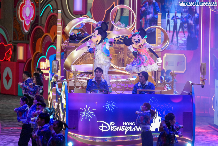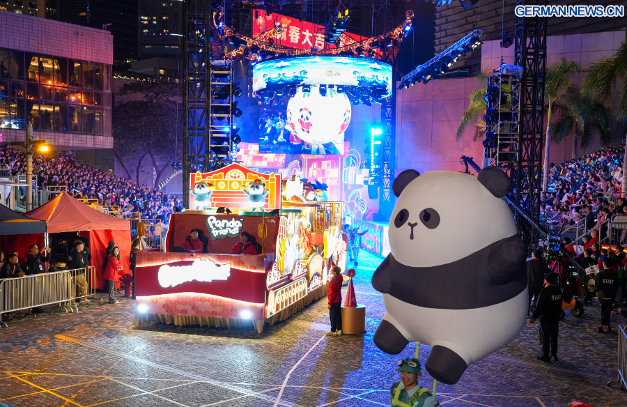 HONGKONG, 18. Februar 2026 (Xinhua) -- Das Foto zeigt Darsteller bei einer internationalen Nachtparade zum Jahr des Pferdes in Hongkong in Südchina, 17. Februar 2026. Am Dienstagabend fand in Hongkong eine internationale Nachtparade zur Feier des Jahres des Pferdes statt, mit der eine Reihe von festlichen Höhepunkten zum chinesischen Neujahrsfest eingeläutet wurden. (Xinhua/Zhu Wei)