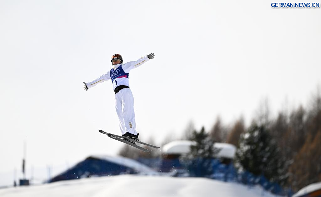 LIVIGNO, 18. Februar 2026 (Xinhuanet) -- Xu Mengtao aus China wetteifert im Finale 2 des Aerials-Wettbewerbs im Freestyle-Skiing der Frauen bei den Olympischen Winterspielen 2026 in Mailand-Cortina in Livigno, Italien, 18. Februar 2026. (Quelle: Xinhua/Zhang Hongxiang)