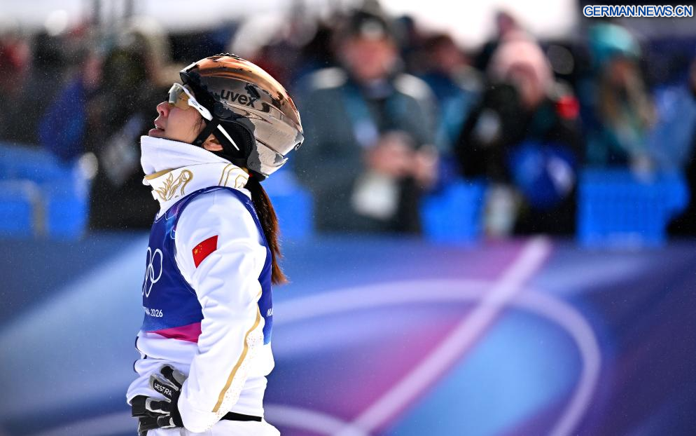 LIVIGNO, 18. Februar 2026 (Xinhuanet) -- Xu Mengtao aus China reagiert nach dem Finale 2 des Aerials-Wettbewerbs im Freestyle-Skiing der Frauen bei den Olympischen Winterspielen 2026 in Mailand-Cortina in Livigno, Italien, 18. Februar 2026. (Quelle: Xinhua/Zhang Hongxiang)