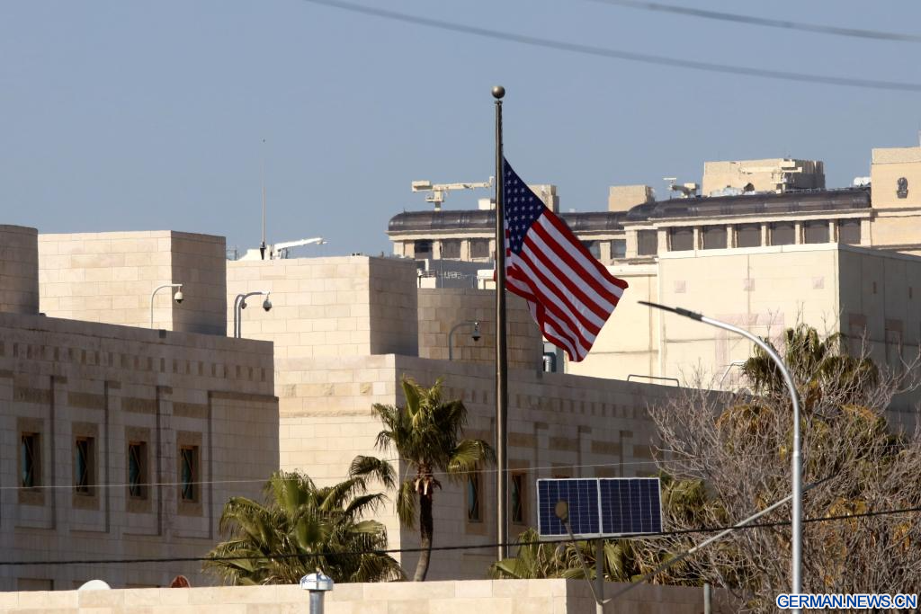 AMMAN, 3. März 2026 (Xinhuanet) -- Das am 3. März 2026 aufgenommene Foto zeigt die US-Botschaft in Amman, Jordanien. Alle Mitarbeiter der US-Botschaft in Amman haben aufgrund einer Sicherheitsbedrohung vorübergehend das Botschaftsgelände verlassen, teilte die Botschaft am Montag in einer Erklärung mit. (Foto von Mohammad Abu Ghosh/Xinhua)