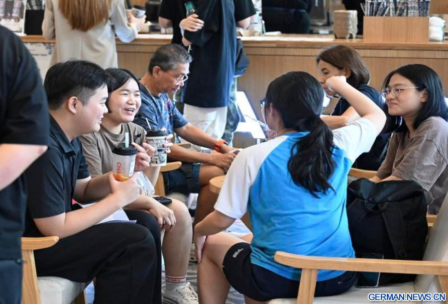 Kunden genießen ihren Milchtee in einem Chagee-Laden in Kuala Lumpur in Malaysia, 18. Juni 2025. (Xinhua/Cheng Yiheng)