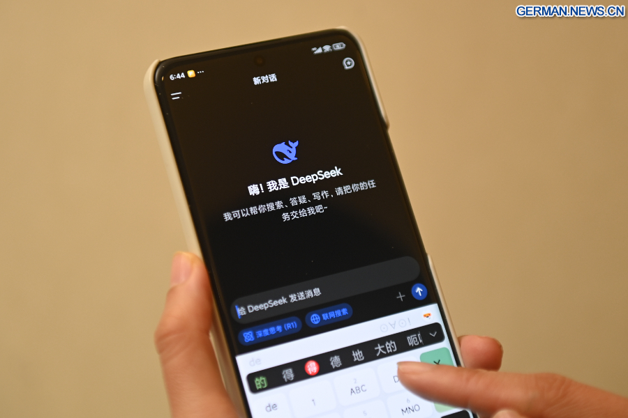 Eine Person nutzt die DeepSeek-App auf einem Mobiltelefon, 17. Februar 2025. (Xinhua/Huang Zongzhi)