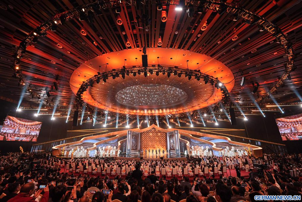 BEIJING, 16. April 2026 (Xinhuanet) -- Das am 16. April aufgenommene Foto zeigt eine Szene bei der Eröffnungszeremonie des 16. Internationalen Filmfestivals von Beijing (BJIFF) in der chinesischen Hauptstadt Beijing. Das 16. BJIFF wurde am Donnerstag hier im Yanqi Lake International Convention & Exhibition Center eröffnet. (Quelle: Xinhua/Xie Han)